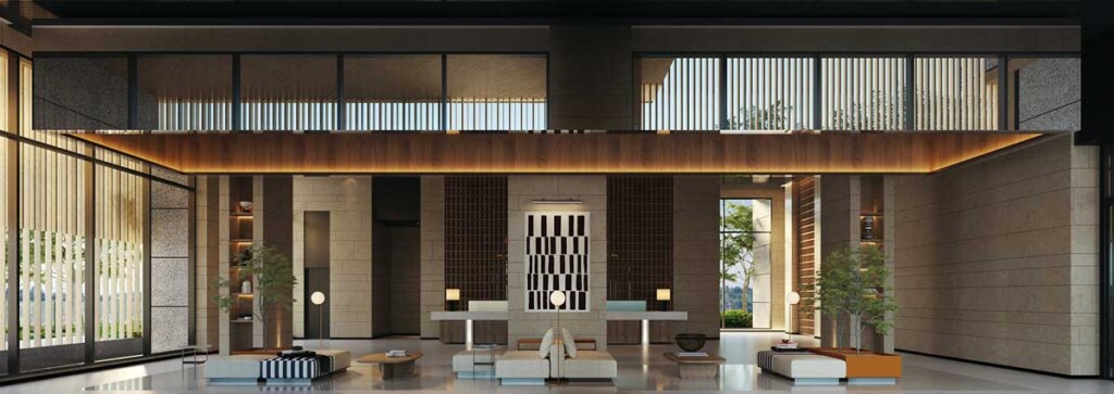『白』案以2,462坪基地的大器尺度,集結10大建築名家蕭家福建築師、日本美學巨擘MAG前田利也、張家豪,以及地景藝術泰斗方極景觀解子建、豪宅御用美學太然設計劉俊男,引進安幔美學品味,設計與AMAN同規挑高6米8大廳,將戶外的綠意引進空間,並選用國際精品建材,從居住者的舒適、健康出發,規劃25至47坪、2至3房精緻格局的頂級寓所。(圖/海宇國際)
