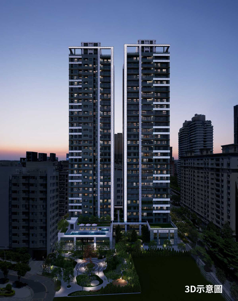 基地近民視總部大樓,距舊市區亦不遠。規劃1~3房,挑高3米6,訴求具VAF智慧淨流系統。