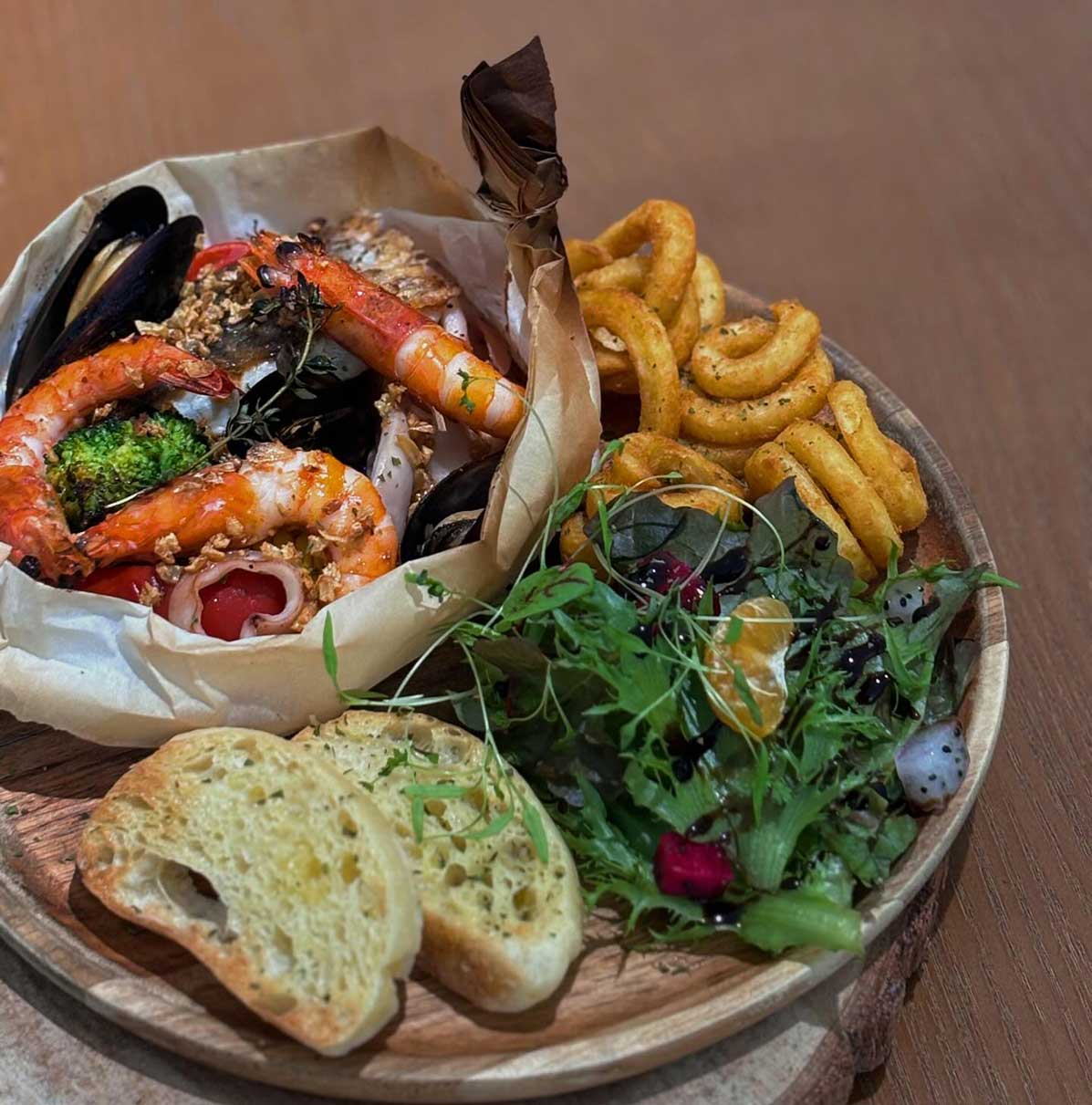 結合一旁的青埔商旅,CP Café店外的擺設令人聯想到異國街道的露天咖啡廳;店內的灰色調及簡約設計,則呈現不同的俐落風格,整體氛圍寧靜,即使一人用餐也不覺突兀。