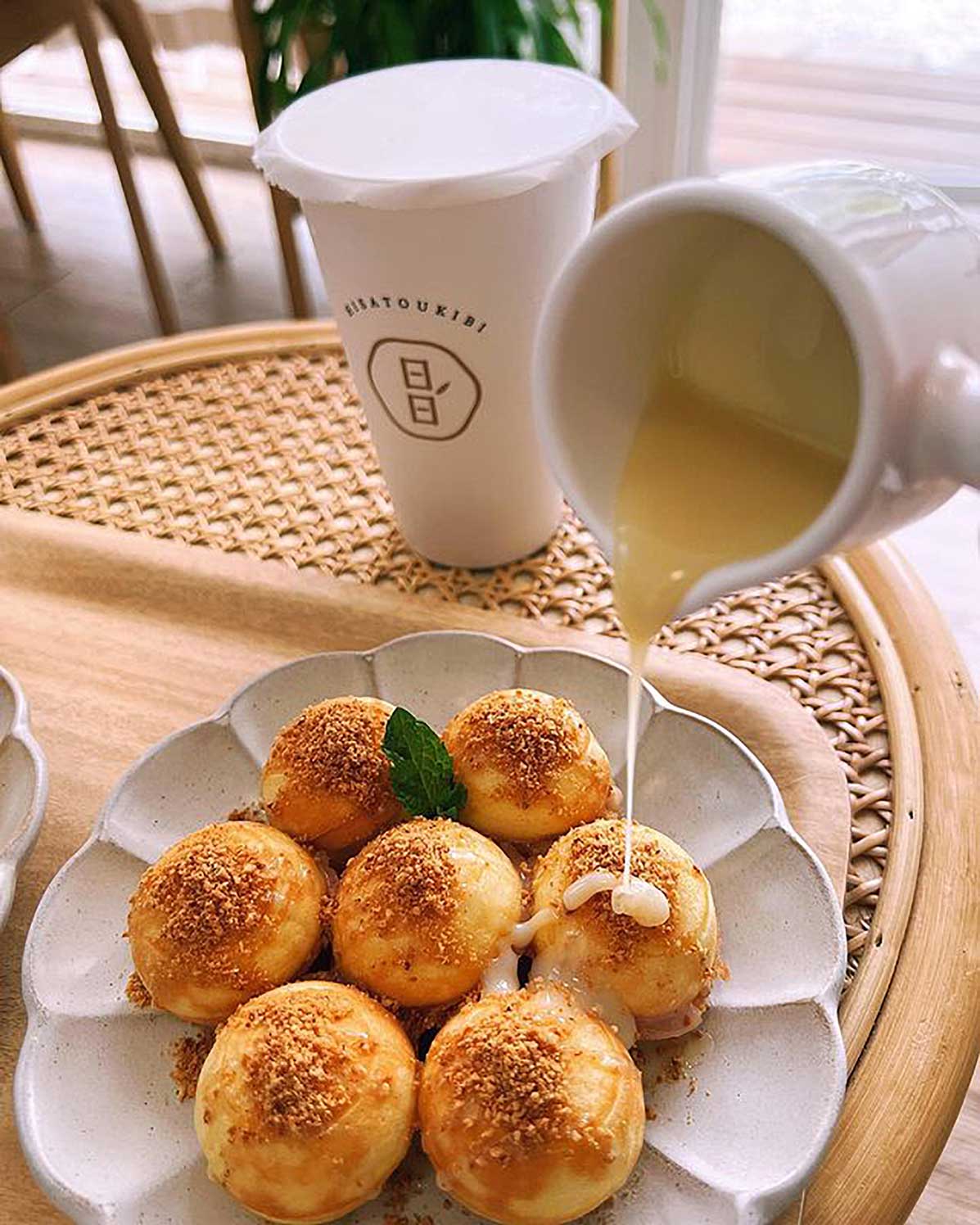 位於華泰名品城周遭、一家純白鐵皮屋外觀的甜點店,店內提供的鬆餅不同於常見的格子鬆餅,而是外表圓滾滾的鬆餅球;搭配純天然、無果糖的日日飲品,又是一個悠閒愜意的下午茶時光。