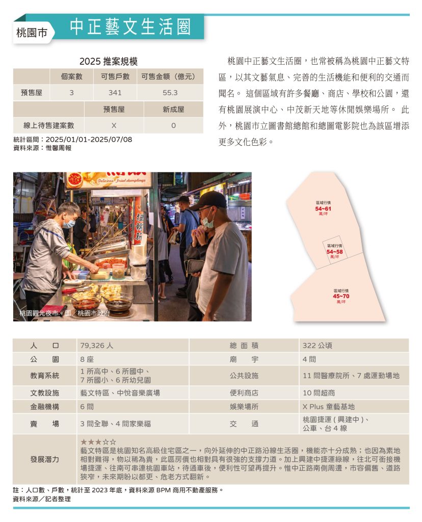 桃園藝文特區及中正路生活圈擁有完善的機能、優質學區與藝文場館,加上緊鄰捷運綠線G08與G09站、距台鐵桃園站不遠等交通建設題材,近年來一直是桃園核心居住區域之一,同時因具備交通便利、人文環境佳等利多,吸引大量自住買盤聚集,也讓該區躍升為建商推案熱點。