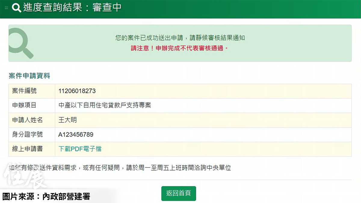 營建署提醒,完成申請不代表審核通過,民眾可再到網站查詢進度,「核定函」不會主動通知,要自行到網站身分驗證後下載,避免收到假的簡訊或詐騙電話;「駁回函」則會透過中華郵政,以紙本公文正式通知。
