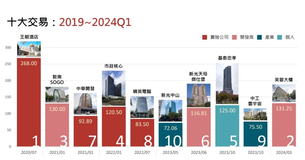 2019年至今2024年Q1,10大交易,資料來源:瑞普萊坊。