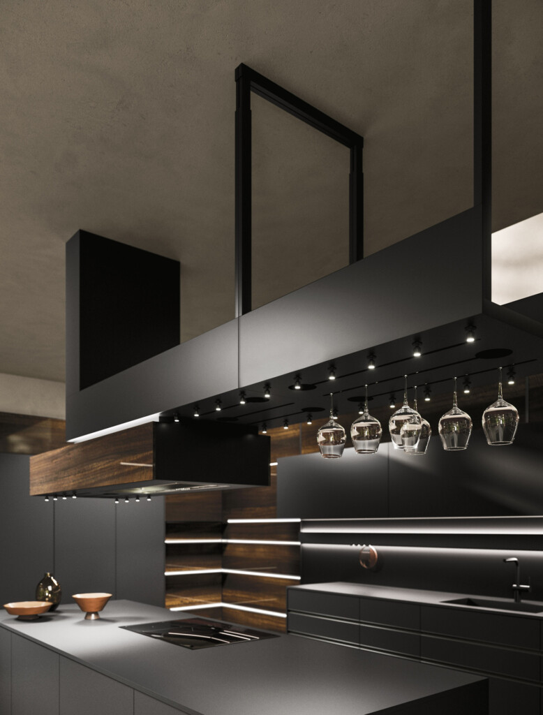 在JOY系列2024的全新設計中,Velo燈帶的幾何反射效果,結合了黑鑽石定制門板,再加上間接照明,為廚房空間增添了藝術風采。此外,也可掛上酒杯支架及iPad支架配件,既實用且美觀。這種極具美學影響力的元素,展現未來廚房的生活樣貌,讓廚房不只是烹飪場所,也能是社交展演空間。