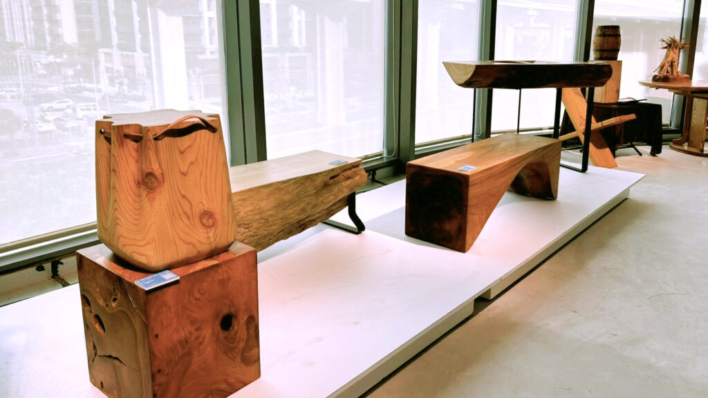 此外,國立屏東科技大學的木材科學與設計系也帶來一系列作品,以「宜室宜家」以及「碳雕」展示對材料特性的巧妙利用以及可持續性的關注;而作品「霞映」則透過對材料和製造工藝的運用,營造出獨特的視覺與觸覺體驗,讓觀眾在感受實用性的同時也能享受藝術美感。