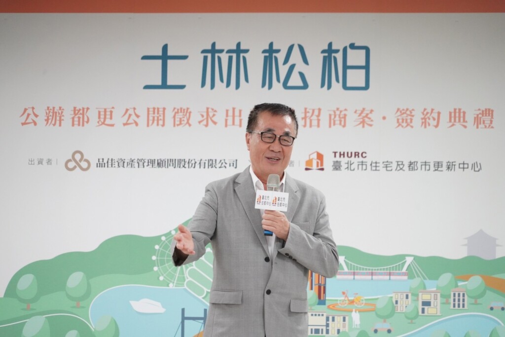 為積極推動都更,品嘉建設1日和台北市住都中心董事長李四川,共同簽署『士林松柏公辦都市更新案』出資暨協助實施都市更新事業契約,宣告此案正式啟動,未來將拆除海砂屋『松柏大廈』及部分鄰近老舊建物,為居民打造安心安居新家園。
