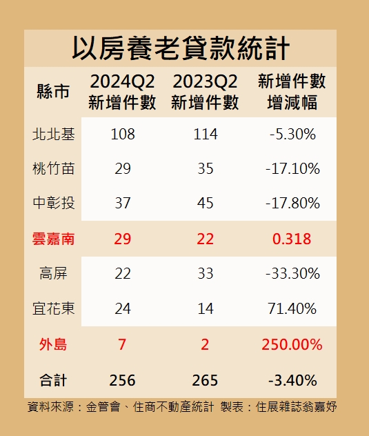 第二季僅雲嘉南、外島「以房養老」件數大增