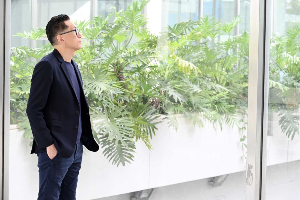 為了取得採訪照片,王俊傑帶我們來到北美館的拍照打卡聖地《迷霧花園》,他很熟捻的告訴攝影記者,從哪個角度拍是最佳攝影位置。拍照時,他用嘴角維持恰到好看的四十五度笑容來呈現,站在花園C位,卡、卡、卡,一張張雜誌大片完成,氛圍感十足,幾乎不用再修圖就可以立即上傳IG打卡,根本就是按照精密腳本設計過的結果。