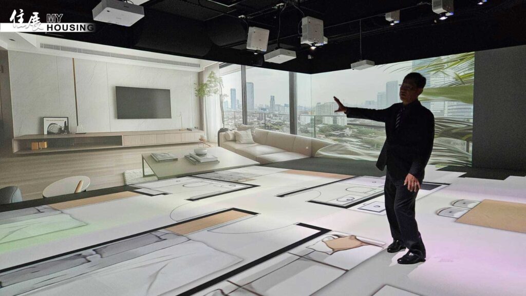 此外,數位樣品屋利用先進的投影技術,將建築物的平面配置圖直接投影於地面,不僅提升了展示的互動性,更有效減少了傳統實體樣品屋的搭建需求,進一步降低碳排放,實踐力信邁向2050淨零碳排的承諾。