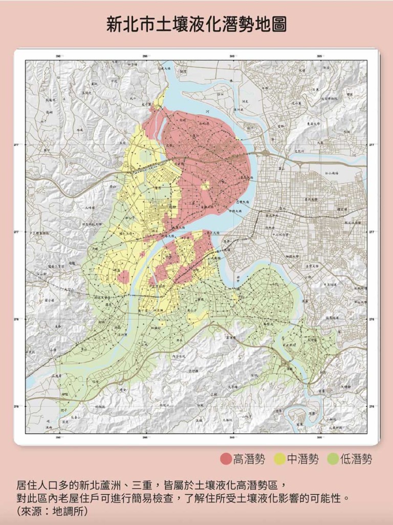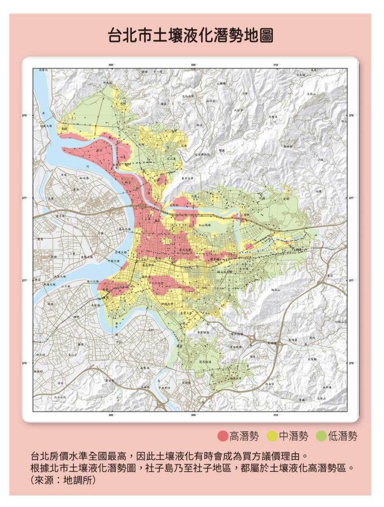 根據北市土壤液化潛勢圖,社子島乃至社子地區,都屬於土壤液化高潛勢區。(來源:地調所)