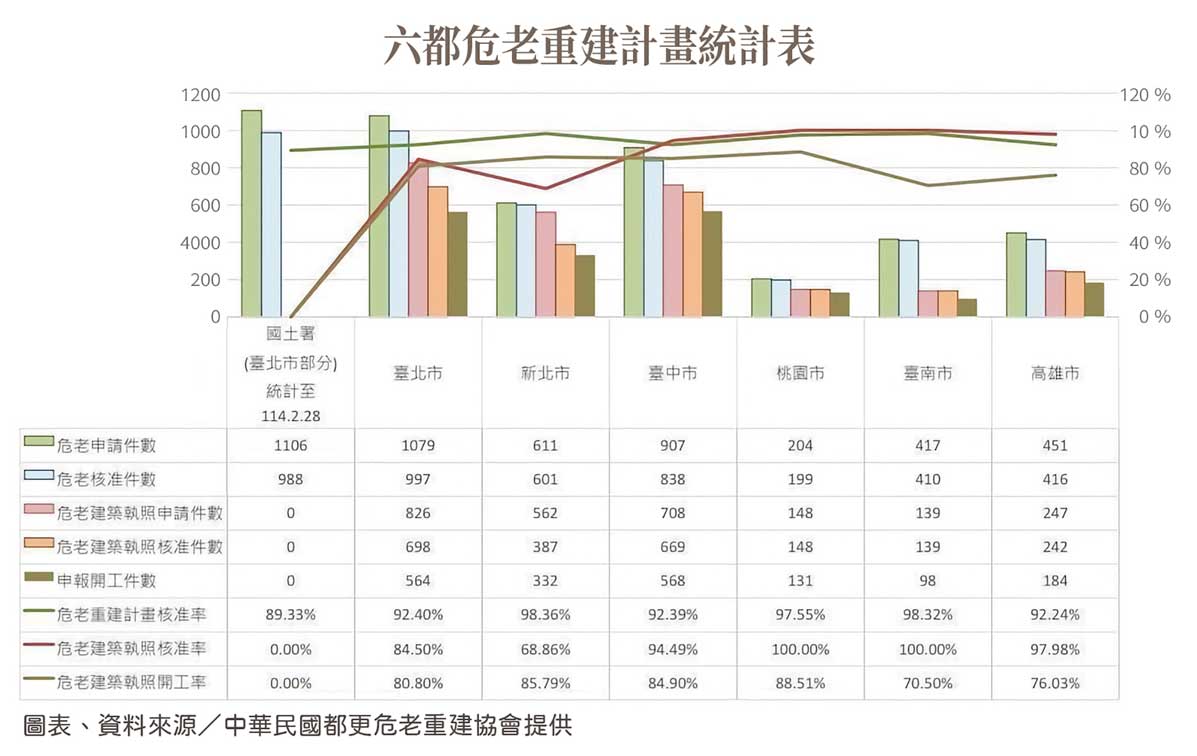 危老條例推動八年,北市核准案數逼近千件,動工比例卻不到一半,全台更有近百案自動失效。當制度誘因失靈、資金鏈斷裂、建商觀望不前,重建全面停擺,城市老屋依舊矗立,卻早已成為無聲的風險累積地帶。