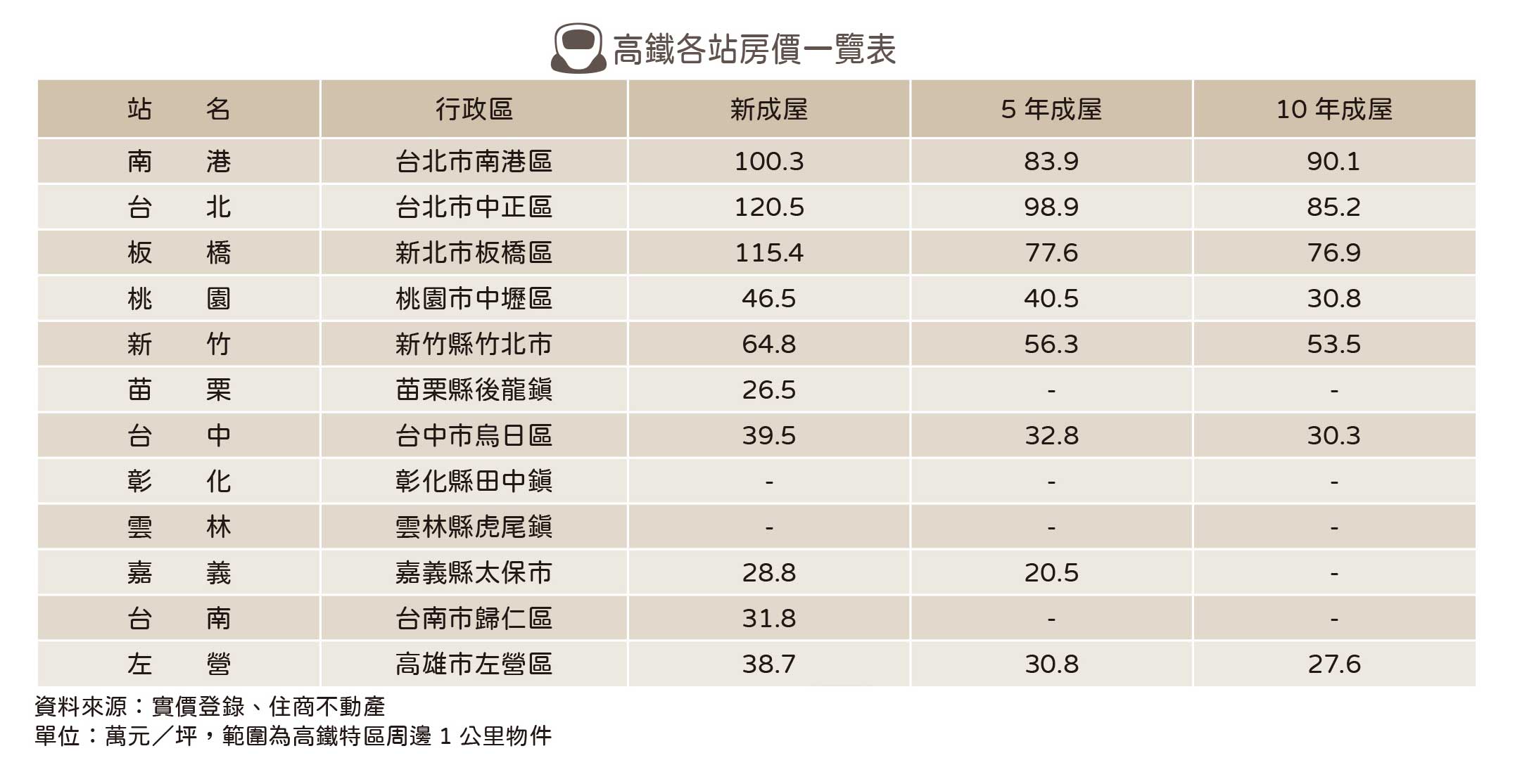 說明:區域行情僅計算當月線上待售建案,故區域內高價/低價建案開案或結案,將影響走勢呈現。