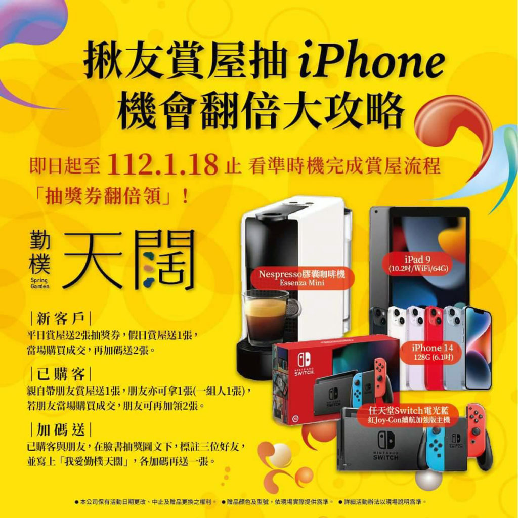 勤樸天闊 跨年賞屋抽大獎,快揪親友賞起來!