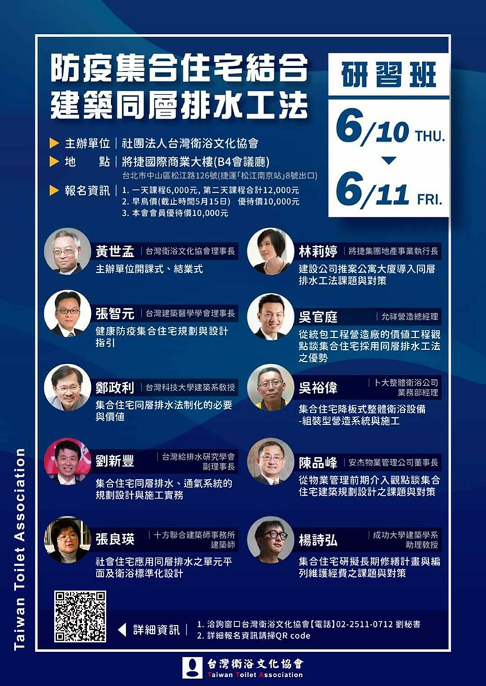 活動內容介紹:防疫集合住宅結合建築同層排水工法研習班