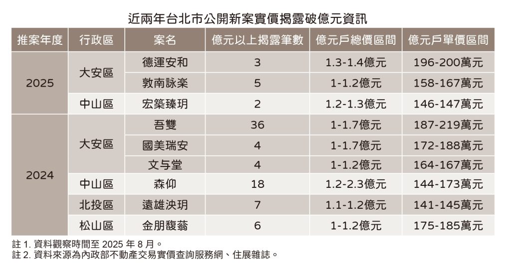 住展雜誌彙整今年迄今台北市推出新案於實價揭露總價破億元資訊,已過了大半年時間,卻僅3案達標高總價水位…