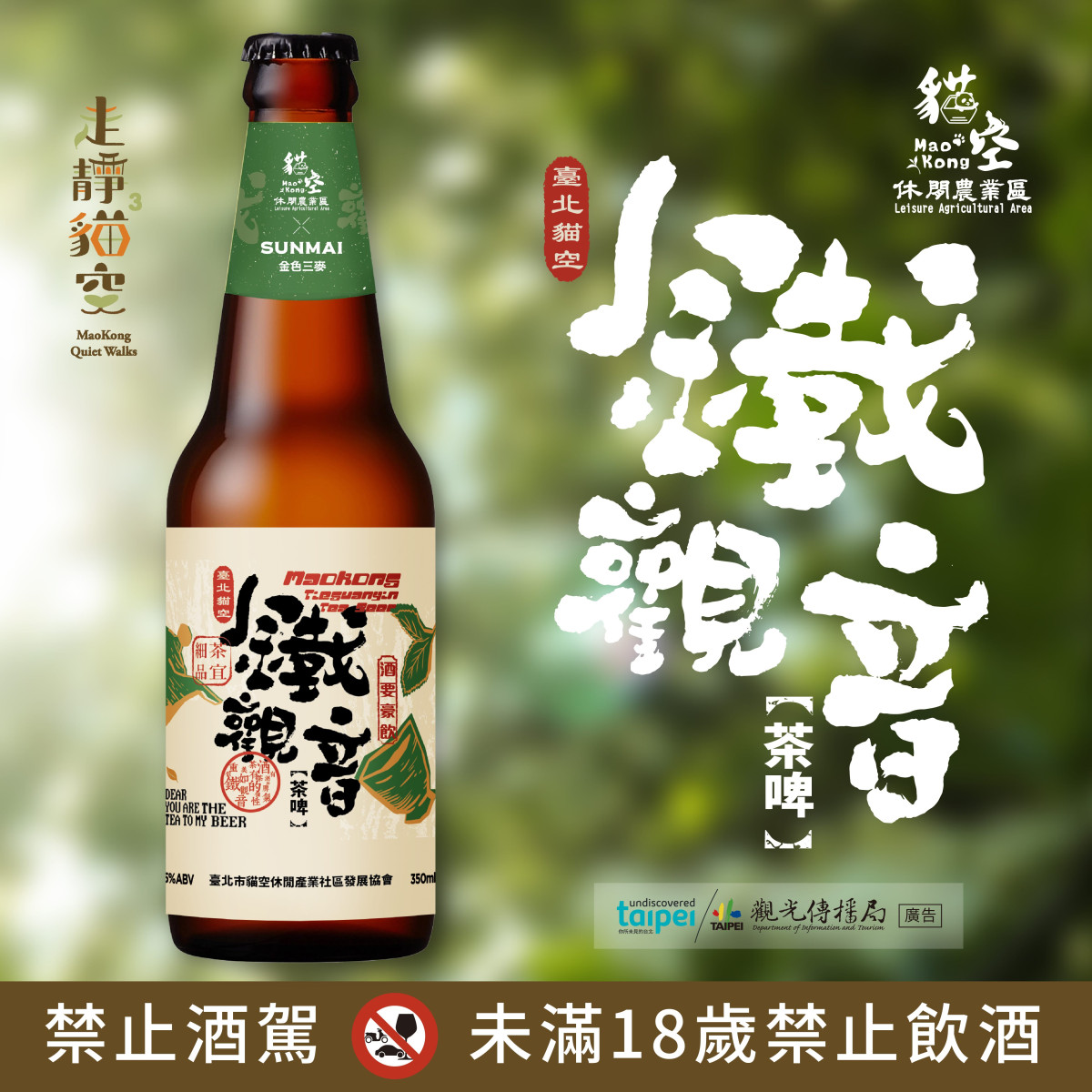 此次合作由觀傳局媒合臺北市貓空休閒產業社區發展協會和金色三麥,巧妙結合貓空的優質茶葉「鐵觀音」與金色三麥的啤酒,打造出獨特風味的飲品,民眾可在貓空指定店家購買,另也可參加「三貓集章趣」活動,只要在貓空指定店家消費滿1,500元,即可免費兌換一瓶鐵觀音茶啤酒(限年滿18歲,數量有限,換完為止)。