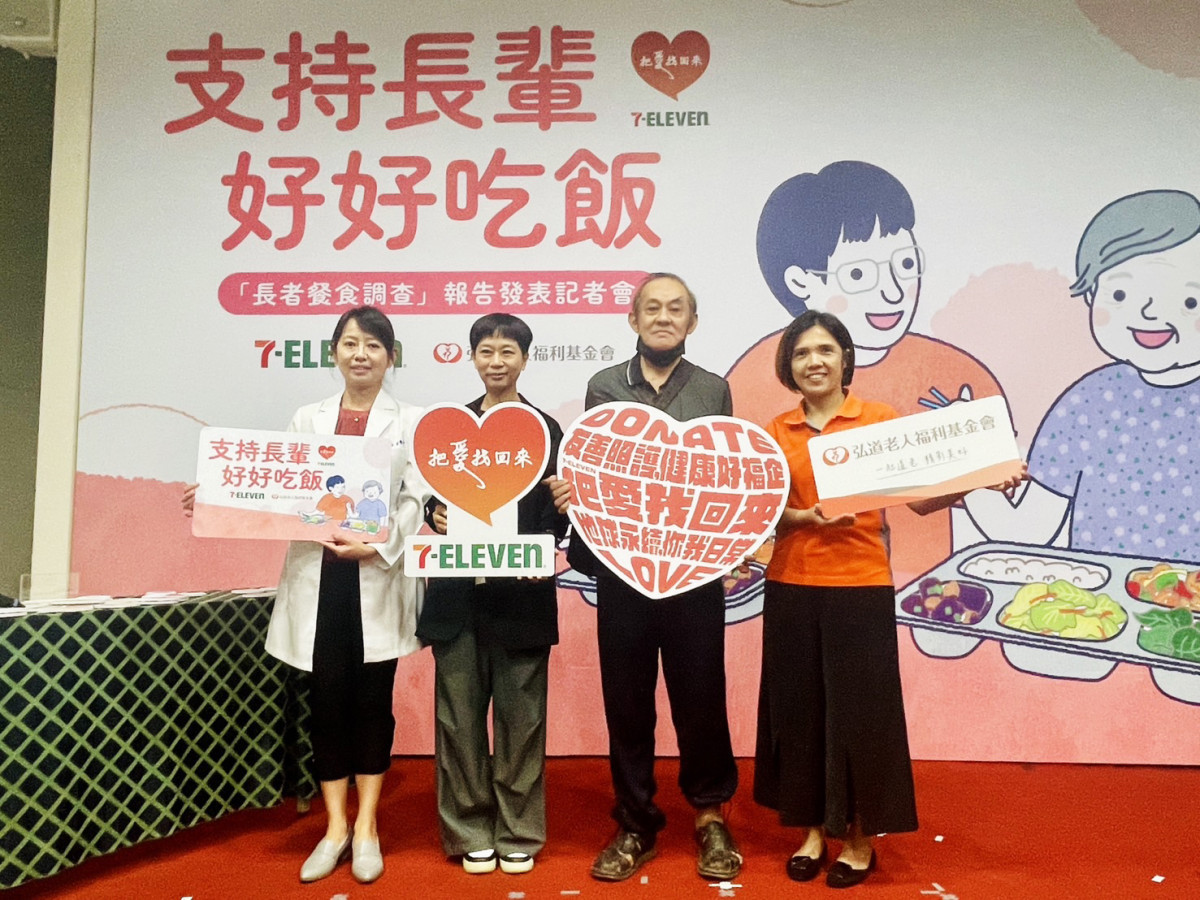 弘道老人福利基金會24日以「陪長輩好好吃飯」為主題,攜手7-ELEVEN共同發表弘道高齡餐食調查報告,調查報告的問卷對象以基金會服務的長輩為主,共訪問1,035位長輩,受訪長輩擴及10個縣市,包括居家關懷與實體服務點的長輩,經濟狀況也包括中低收、邊緣戶與一般戶,主要呈現弘道服務長輩的餐食樣態,並且透過結果,做為未來推動長者餐食營養服務的參考。