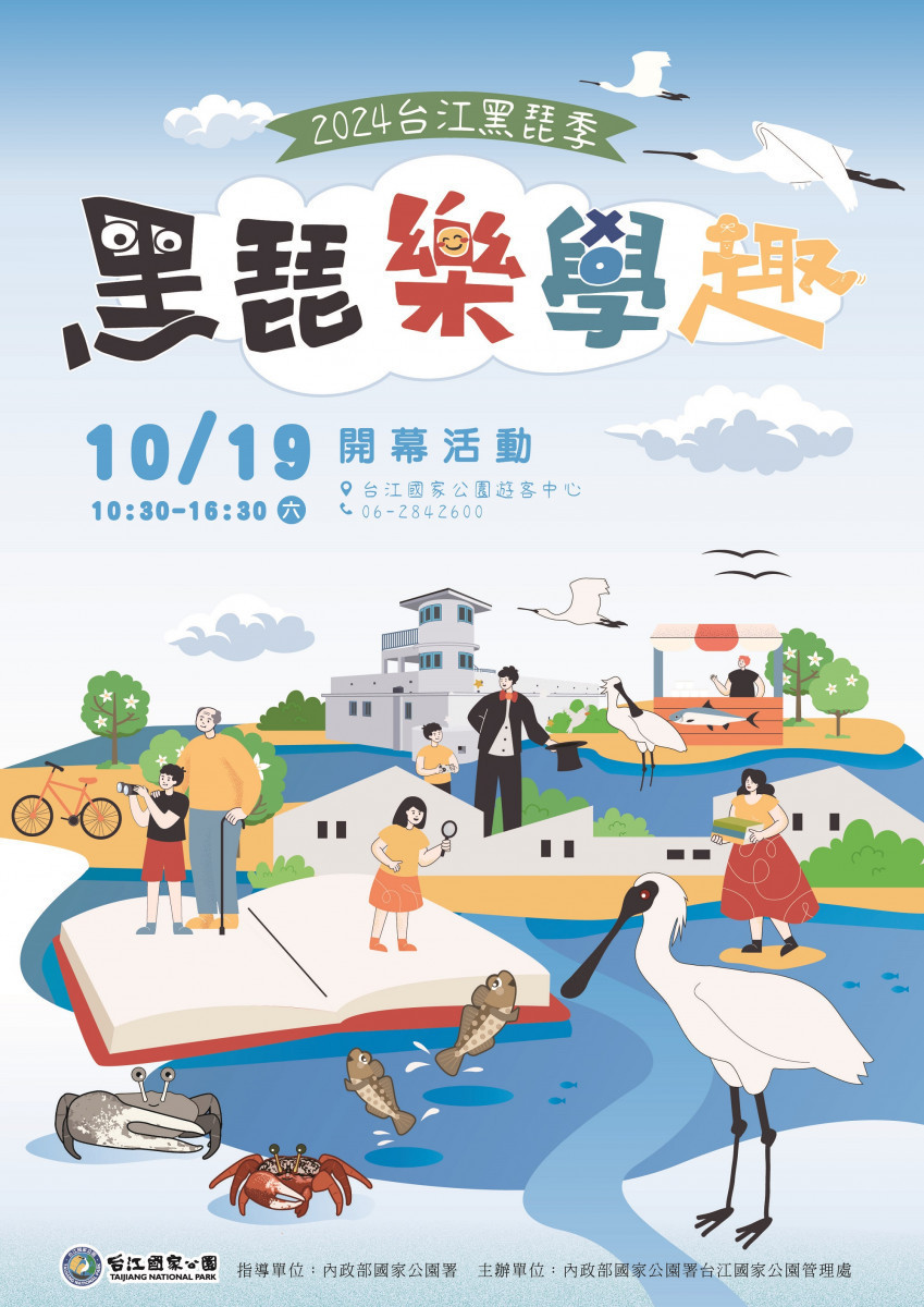 「2024台江黑琵季-黑琵樂學趣」開幕,將於10月19日(六)在台江處遊客中心前廣場舉辦,歡迎大家攜手參與。
