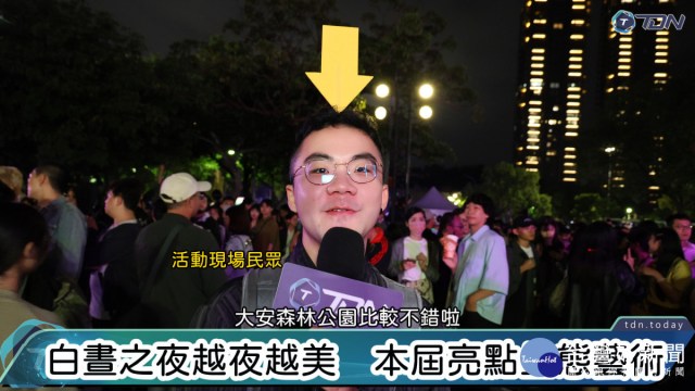 2024臺北白晝之夜以「夜行動物派對」為主題,於11月2日下午6時在大安森林公園露天音樂台舉行夜秀降臨儀式,正式拉開序幕。蔣萬安市長、林奕華副市長、法國在台協會主任Franck Paris等貴賓一同參與,本屆白晝之夜集結61組國內外藝術團隊,為臺北帶來充滿藝術能量與生態意識的夜晚。