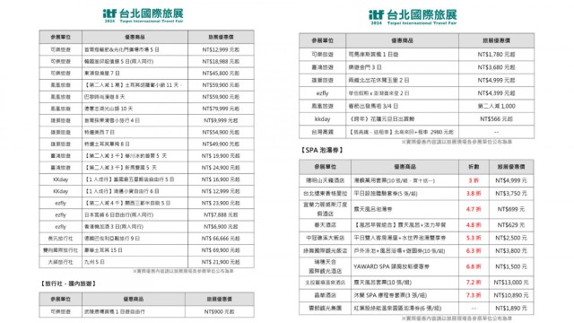 國人旅遊型態改變,自由行市場崛起,業者也祭出超值商品,不論是機加酒行程、熱門交通票券、主題樂園門票、當地遊程等一應俱全,參觀民眾能掌握最新旅遊趨勢及產品!隨著聖誕跨年、春節寒假將至,各大旅行社也力推冬季賞雪、泡湯、聖誕節慶等主題優惠行程。日韓冬季滑雪、玩雪行程詢問度高,五福旅遊「雪漾首爾5日」21,900元起,旅展享第二人減3,000元;喜鴻假期「雙戲雪首爾5日」旅展優惠價39,900元起,第二人最高減8,000元;可樂旅遊則推出韓國5日遊萬元有找的行程,旅展期間每日也將限量推出日本環球影城買一送一的好康優惠;鳳凰旅遊推出歐洲線、土耳其最高第二人減1萬,春節檔期紐澳線第二人最高現省6,000元的旅展優惠;KKday推出韓國、日本、泰國機票免萬元,機加酒、迷你團商品現場下單現折1,000元,郵輪產品早鳥價每房最高折6,000元,旅展現場下單再折3,000元;雄獅旅遊推出季節限定「楓紅首爾樂天小旅行4日」免萬元,更首度推出JR九州36+3列車保證席次,可體驗黑豚料理與砂蒸浴;長汎旅行社「香港3天2夜機加酒自由行」最高享折扣1,055元,再加碼抽機票;易飛旅遊限時下殺,國外團體行程最高買一送一,國內旅遊第4人免費!展期間現場下單滿1萬元還有機會將峴港往返機票、宮崎-佐賀自選往返機票帶回家;Klook於現場祭出全站1折起超殺優惠,推出環球影城買1送1、住宿滿2千元折1千元、不限流eSIM 1折等活動,現場玩遊戲還可以抽日本星野集飯店「界」系列住宿一晚。