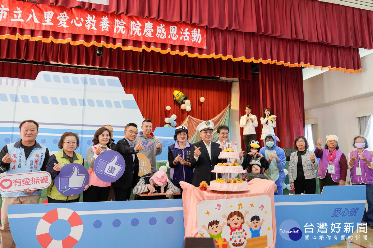「八里愛心教養院生日快樂!」新北市長侯友宜今(29)日與院生家長、志工及貴賓等約300人同歡「慶生」,共度新北市立八里愛心教養院40周年院慶。另立法委員洪孟楷、市議員陳偉杰、陳家琪、八里區長林俊宏等也共同歡慶八里愛心教養院40周年。