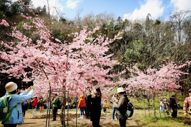 一年一度的武陵農場櫻花季已於2月8日至23日盛大展開!記者近日實際走訪,目前整體花況約3至4成左右,根據武陵農場粉專表示,紅粉佳人已有4至5成已綻開。根據花況表現,可能預計228連假期間將是這場粉嫩盛宴的最佳賞花期。走訪當天有遊客表示,目前花況只有4成左右,跟預期的有點落差,但得知可能在228連假期間,將會迎來滿開期,考慮上網再訂一次賞櫻專車,希望能夠親眼目睹盛開的花況。