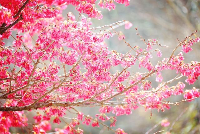 武陵農場的櫻花,正以其獨特的魅力,悄悄為這座山谷披上夢幻的粉色衣裳!目前山櫻花已綻放,嬌豔欲滴,而最受期待的「紅粉佳人」也正含苞初放中,預計下週起將逐漸進入盛開期,屆時,粉嫩的花瓣將與山櫻花交相輝映,譜寫出一曲浪漫的春日協奏曲。想像一下,漫步在粉紅色的花海步道中,空氣中瀰漫著淡淡的櫻花香氣,相信將是多麼令人心醉的體驗!除了桃花莊,兆豐茶園區的紅粉佳人也已悄悄綻放,預計本週末即可開始欣賞到初綻的櫻花美景,將茶園妝點得如詩如畫。