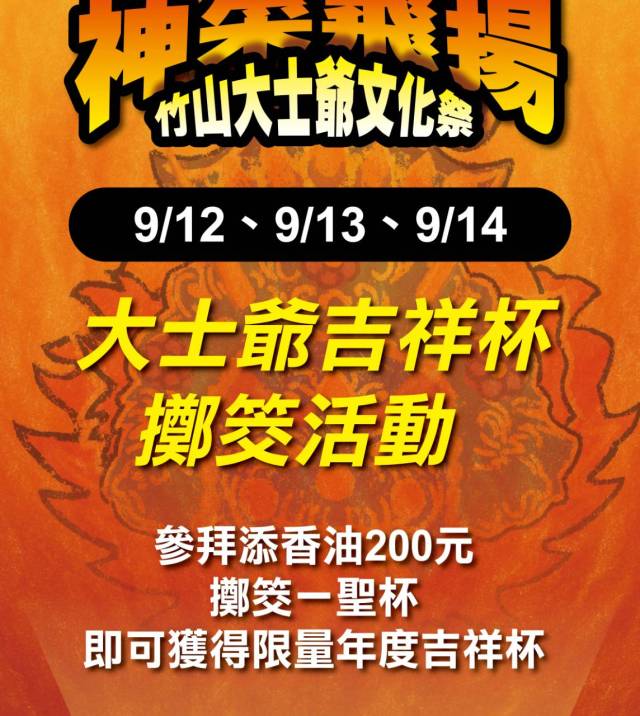 南投縣竹山鎮年度宗教盛事「大士爺文化祭」將於國曆9月12日至14日盛大舉行。主辦單位正覺寺今年融合地方茶產業特色,推出兩款以琉璃材質打造的「雙龍搶珠吉祥杯」,杯底印有金色「福」字,寓意為信眾獻上吉祥福氣。