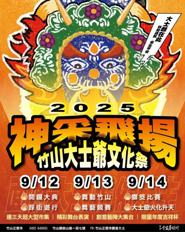 9月14日(日): 上午舉行「好運連連擲筊競賽」,下午則有在地社團表演。當晚19:30,將迎來本次文化祭最高潮的**「神聖大士爺祈福升天」**儀式。
