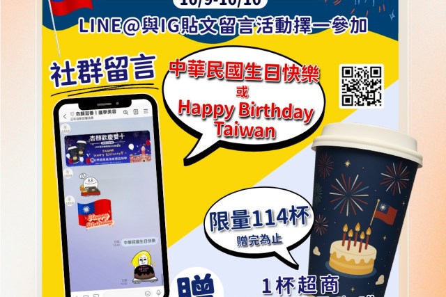 雙十國慶將至,不少人已經準備出門參加升旗典禮或煙火活動,但在台北,一間皮膚科診所卻搖身一變成了「國慶茶會會場」。院方突發奇想,只要民眾到場大聲喊出「中華民國生日快樂」或「Happy Birthday Taiwan」,再加上一句「花蓮加油」,就能免費領取咖啡與點心,讓原本嚴肅的診療空間,瞬間變成充滿笑聲與祝福的派對現場。