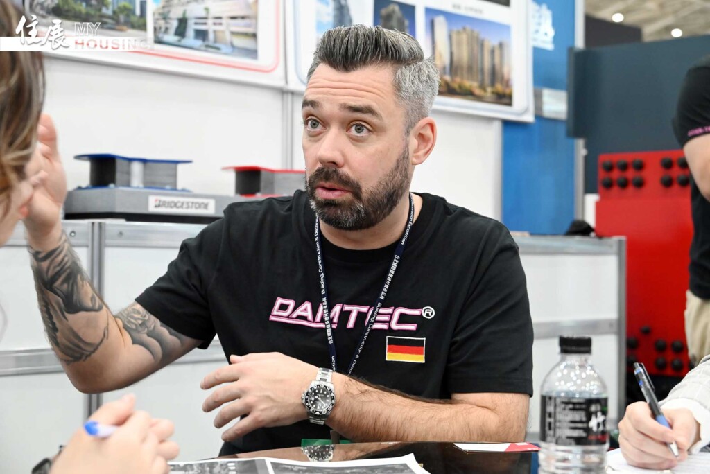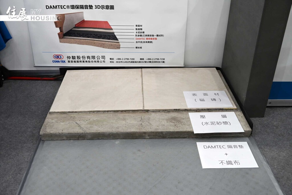 KRAIBURG亞洲區銷售經理Philipp Bootsmann自豪地表示,Damtec橡膠隔音墊的「硬軟硬」結構,最高可降噪約31分貝。他強調,「Damtec具有出色的降噪隔音能力及高承載力,一般市售的隔音墊材料,例如PE發泡及岩棉等,不耐久壓且易變形,進而影響隔音效果。而Damtec橡膠隔音墊不僅動態剛性低,最高承載可達每平方米20噸,使用30年後僅約有6%的低變形率,能夠長期保持穩定的隔音性能。」
