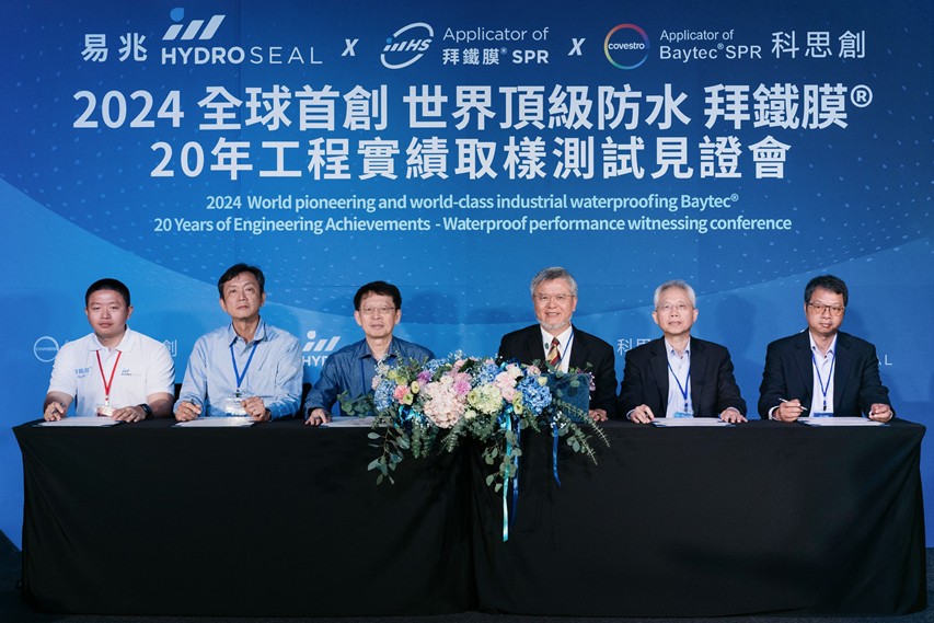 科思創彈性體亞太技術總監陳敏表示,科思創與易兆企業合作超過20年,易兆在施工品質,員工訓練上,都令大家印象非常深刻與信任,也因為彼此之間的信賴,能放心與易兆拜鐵膜防水膜合作。