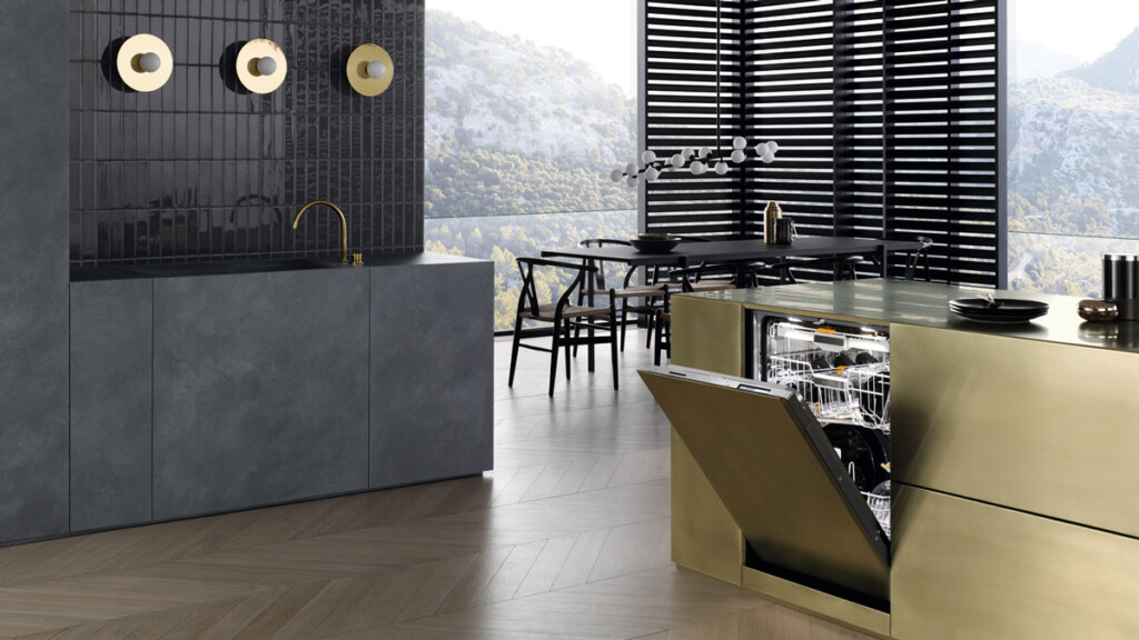 嵌入式洗碗機 依據外觀是否留有操作面板,分為半嵌、全嵌式兩種;在最高達75度高溫的洗程後,自動將門板推開小縫,讓機內已降溫的溼氣排出。(嘉儀企業︱Miele)