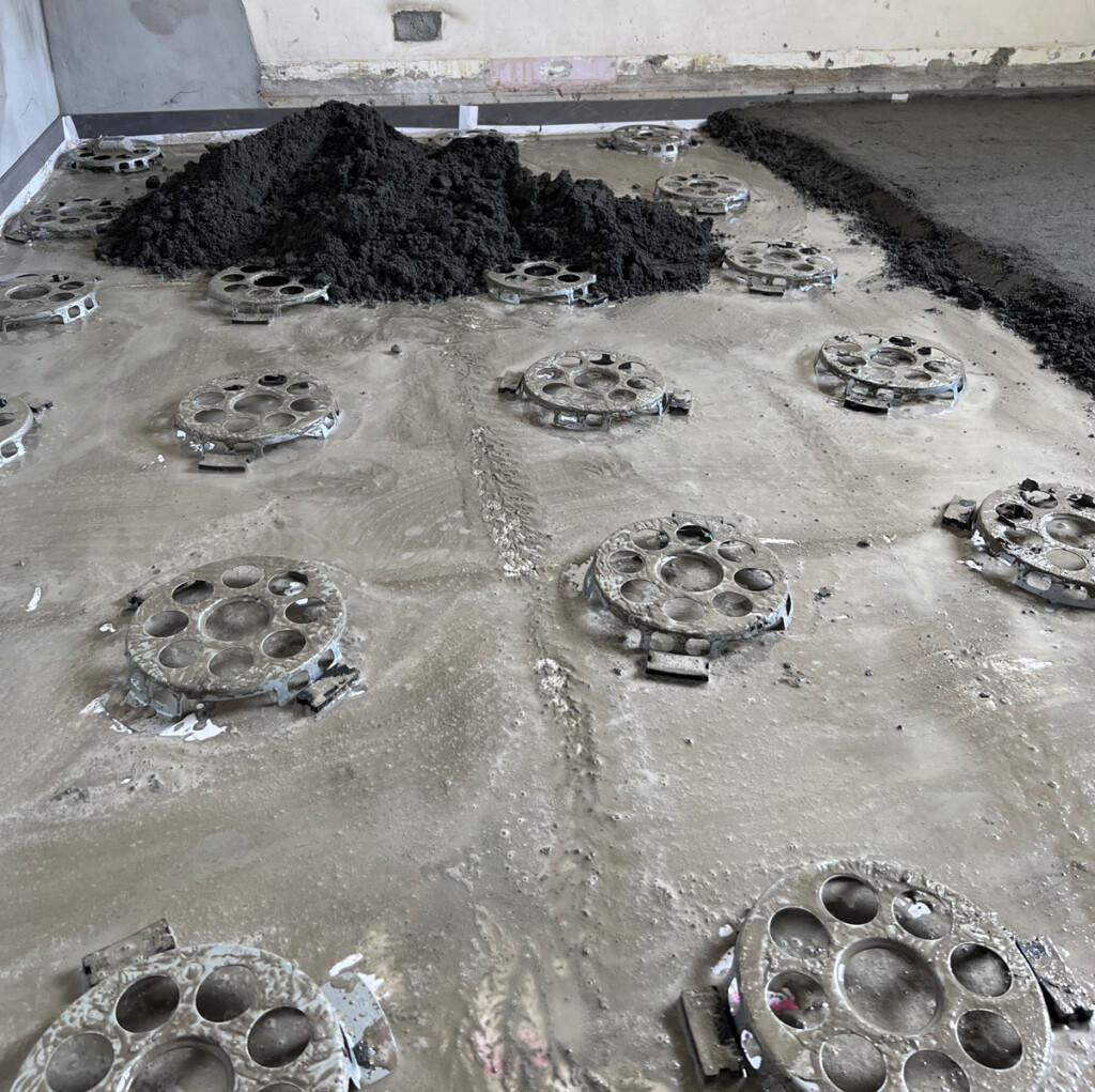 九元金屬固定支撐架專利結構設計,有著高強度抗壓,計算平均每平方米具有4000kgf以上的抗壓強度,再透過水泥砂漿包覆金屬固定支撐架,則可進一步提高水泥砂漿抗壓強度,降低因上方重壓而造成軟硬不均所衍生的問題。