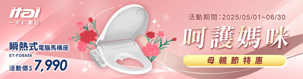 一太e衛浴母親節優惠,智能馬桶座最低只要7990元起https://www.itai.com.tw/bathroom-toilet-special-offer/