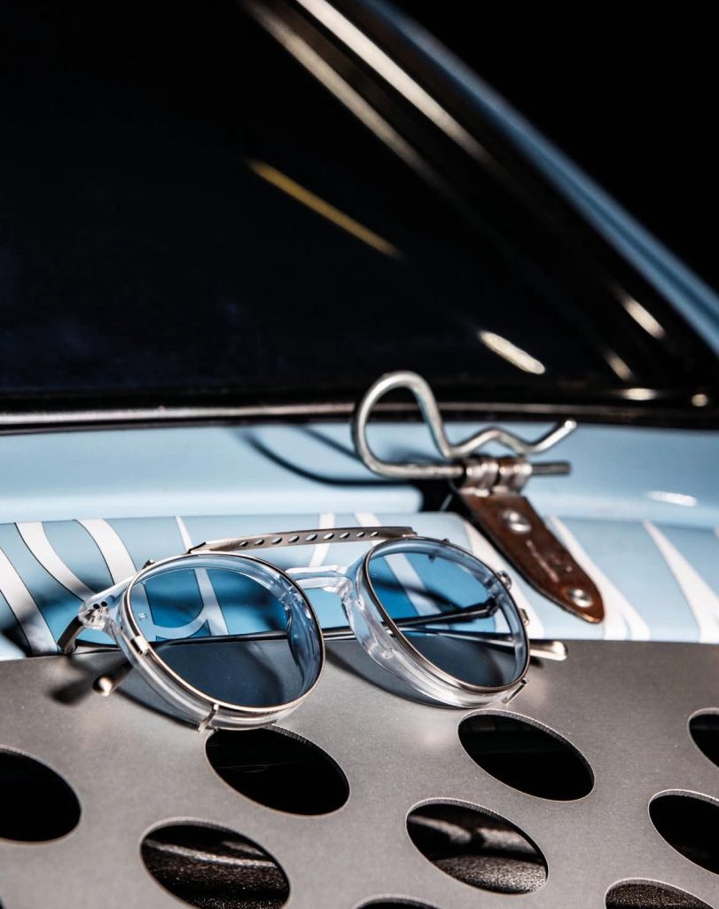 以 1970 年代跑車方向盤的靈感,由純鈦製成的框體,不止有輕盈與耐用的特性,即便是帶著頭盔,也完全不影響配戴時的舒適感,是配戴者「追風競速」時不可或缺的配件。圖/米可利眼鏡