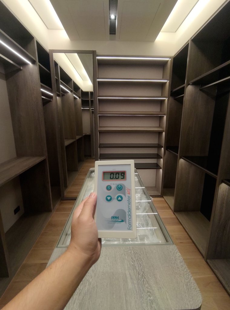 透過高效防霾紗窗與靜電濾網的使用,有效阻擋PM2.5與花粉過敏原,搭配精心規劃的通風口與空氣流動,避免產生空氣死角。此外,邑舍嚴選低VOC塗料、FSC認證木料、環保合板與天然礦物塗層,從源頭降低室內有害物質的釋放,並於每案交付前提供詳細的空氣品質檢測報告,實踐設計透明化與數據化。