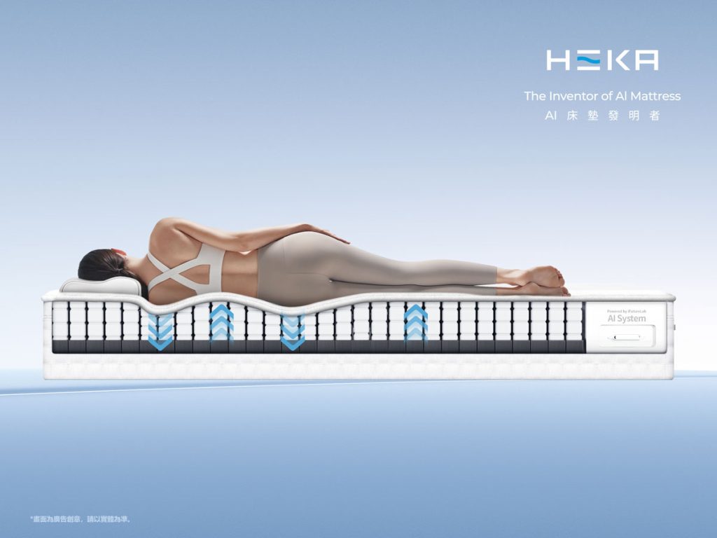 HEKA作為全球首創AI智慧床墊品牌,由美國史丹佛睡眠醫學中心與矽谷iFutureLab共同研發,HEKA-AI智能床墊整合超過230萬筆睡眠數據與3萬多組睡眠實驗,能依身體姿勢與壓力分布主動調整支撐力,提升整體睡眠舒適感,將AI技術導入日常睡眠。