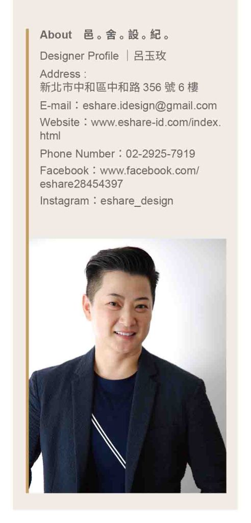 「設計與業主的關係,就像一段戀愛,不是單向的賦予,而是雙向的理解與交流。」邑舍設紀設計總監陸簡碩宏這麼說。
