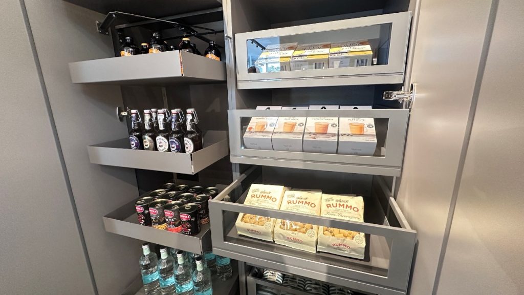 滑軌部分則採業界唯一的同步鋼索滑軌設計,大幅提升抽屜啟閉的順暢與穩定性,相較傳統滑軌可提升多達30%的操作流暢度。每個抽屜亦標配防滑底板與內置調整蓋板,讓整體視覺更俐落統一。