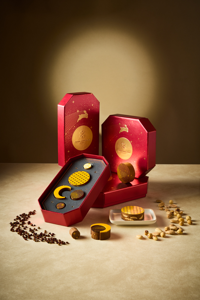 比利時精品巧克力品牌 Pierre Marcolini,今年以「星月映圓」系列禮盒迎接中秋節。設計靈感源自夜空與月色,透過榛果、檸檬、花椒、煙燻杏仁與牛軋糖等元素,搭配黑巧克力、牛奶巧克力與白巧克力,營造酸甜、辛香與醇厚堆疊的口感,象徵團聚時刻的多重風味。