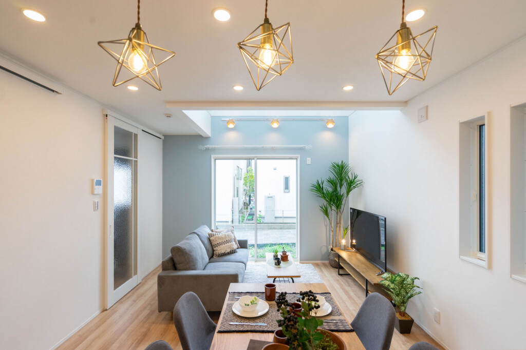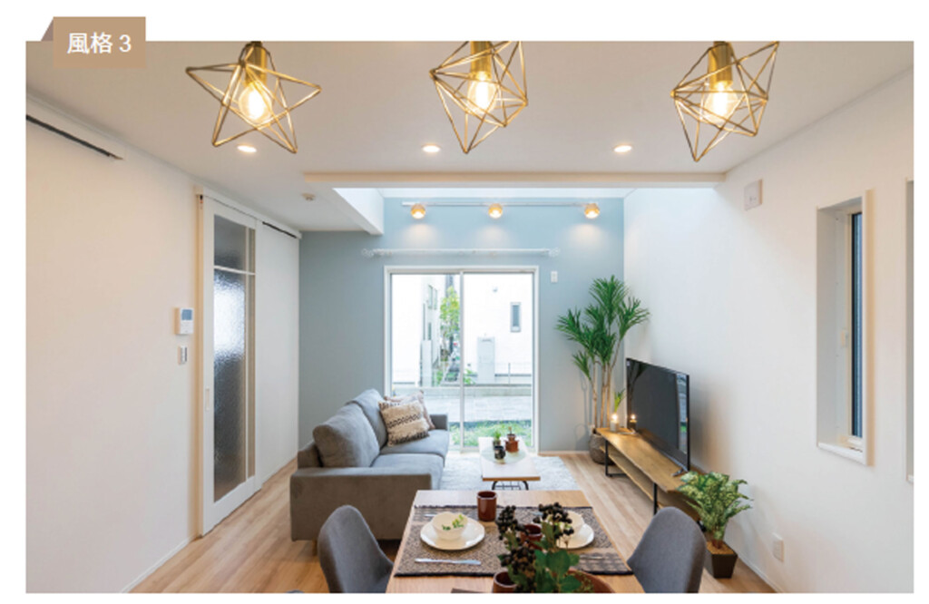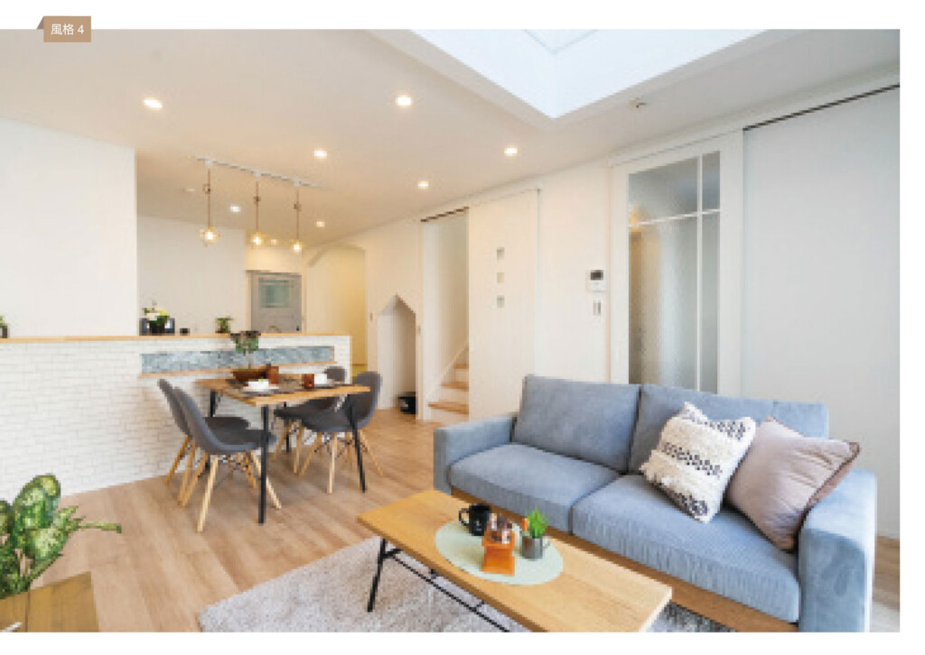風格4 自然摩登(Natural Modern):為了充分善用延伸至天花板的挑高天井,讓陽光灑滿客廳的每個角落,設計師打造一個猶如咖啡廳露台的開放空間,讓人可輕鬆愜意地享受被自然綠意包圍的靜謐時光。當夜幕降臨,星空般閃爍的燈光為居家營造出夢幻迷人的氛圍。自然與光影交融,享受生活中美好與幸福的片刻。