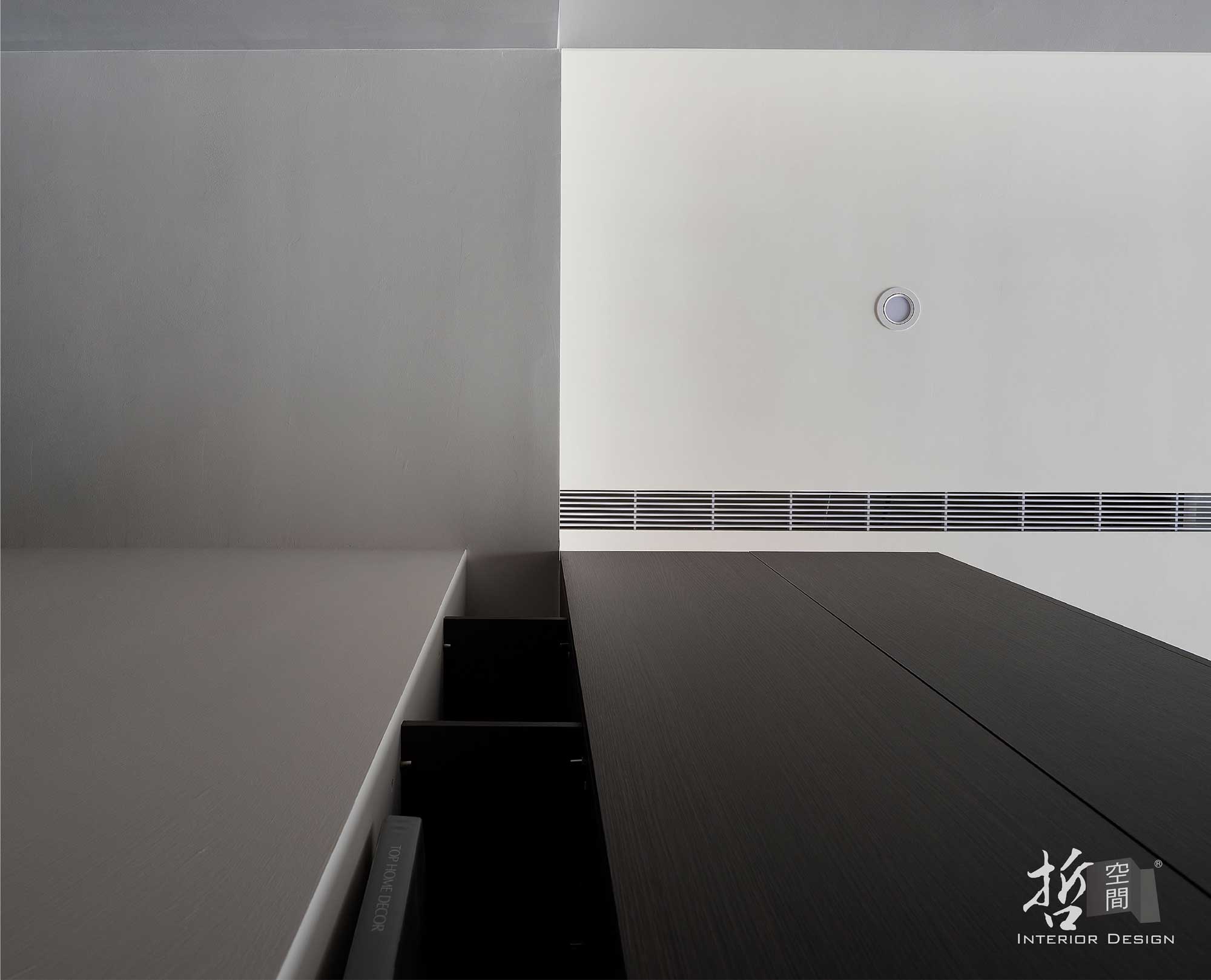喜歡簡單生活有條有緒,長向型的公共區域是這大男孩的遊戲間,而最低樑距離地板不到2米4,為了放大空間不刻意區劃客餐廳界線;讓電視牆與原始位置對調,將必要的收納及展示需求集中,依空間尺度進行分割使電視下方的平台延伸,視線由玄關一路展開至客廳落地窗。