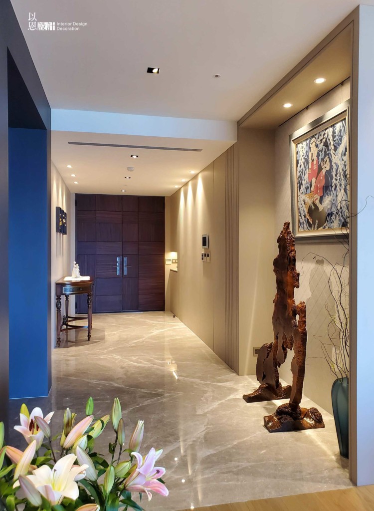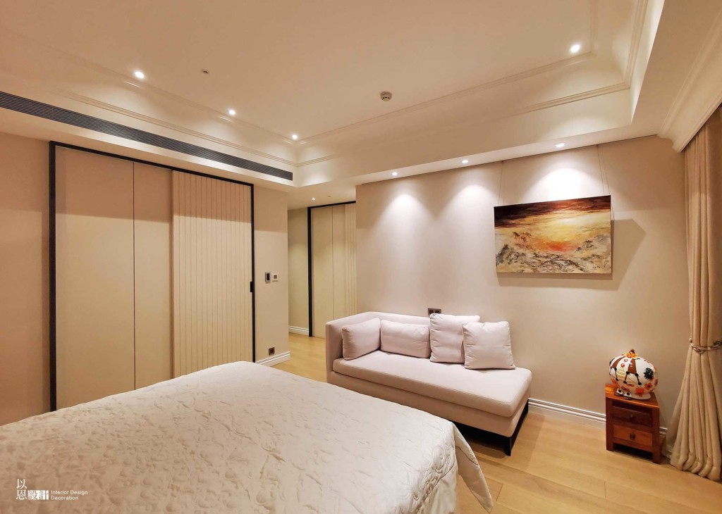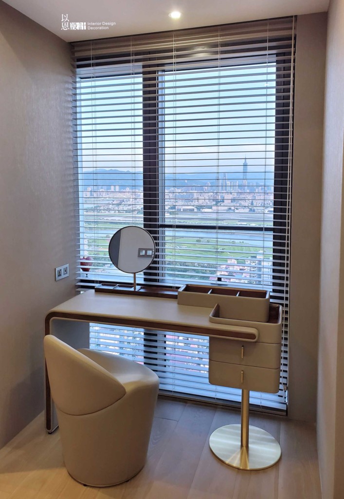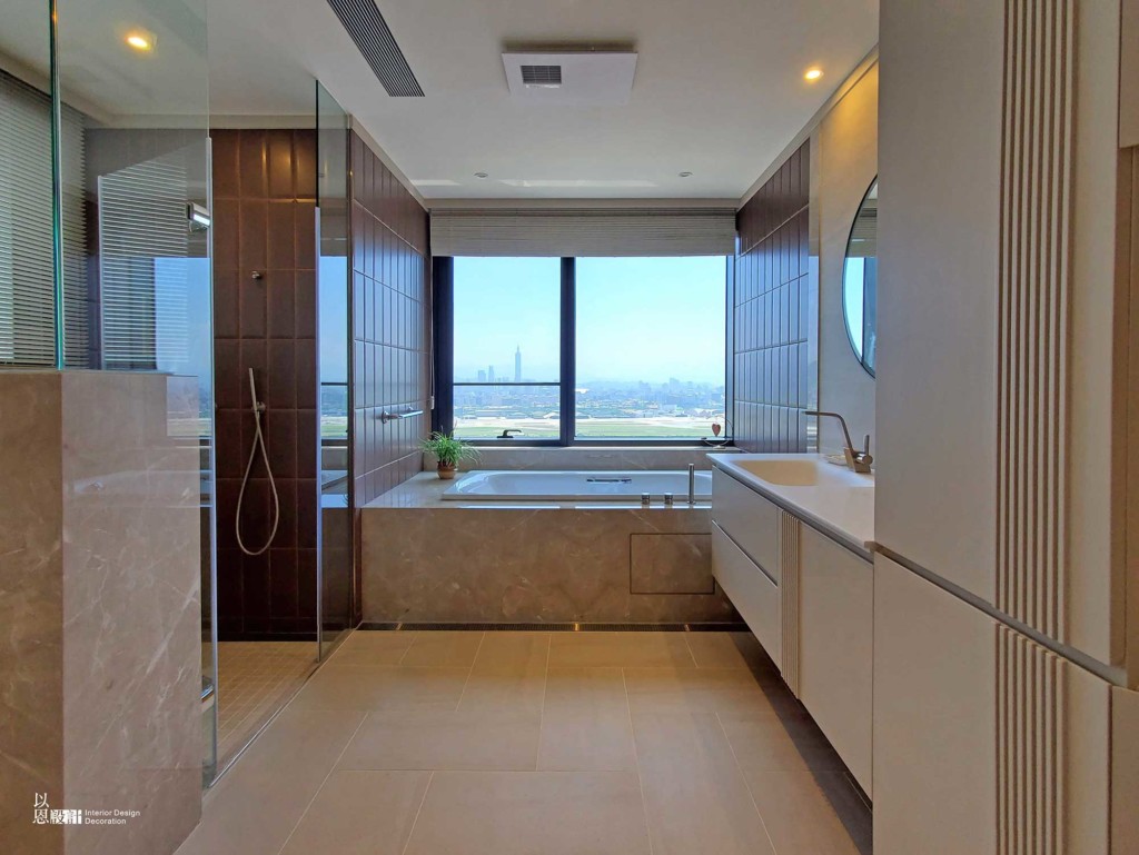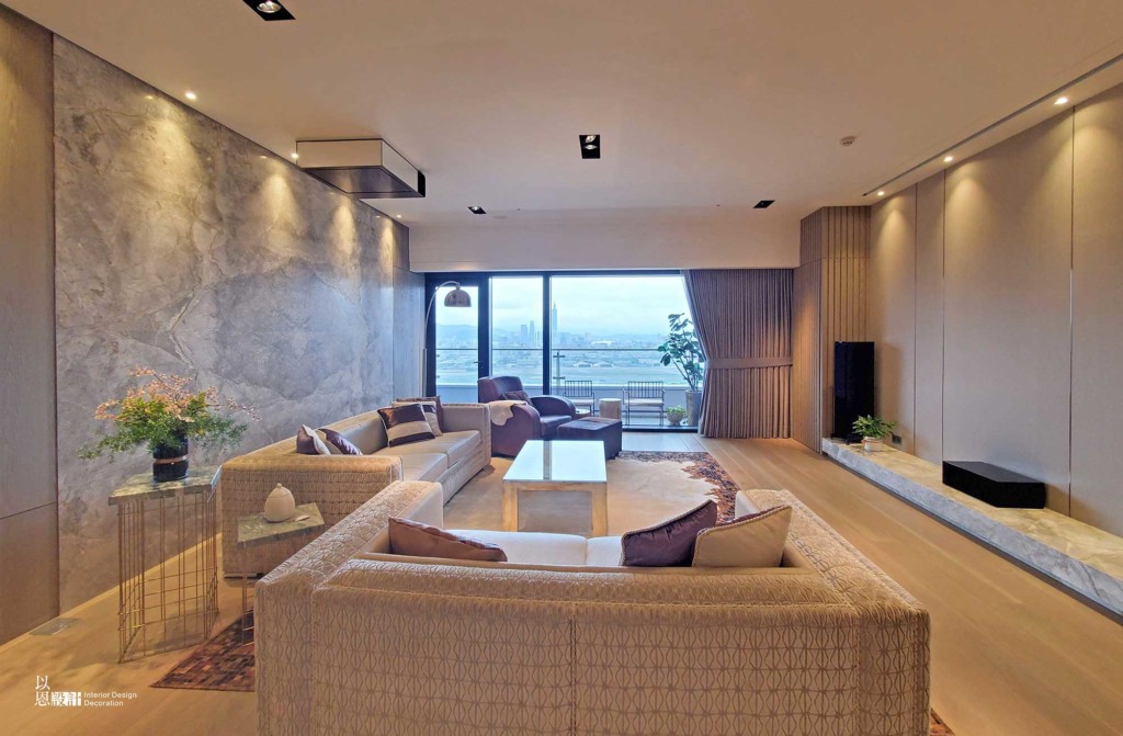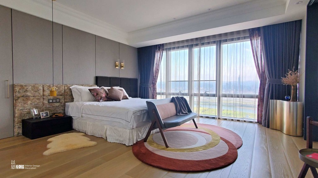 公領域皆為全開放式,且都能看到客廳窗外的美景,在公私領域轉換時,也有正式的玄關空間,避免從公領域直接看到房間門,可有效保護隱私。從客廳到大主臥4個單位 (小客廳→更衣室→房間→衛浴) 一路美景不間斷,特別每個房間都有各別的喜好搭配、與獨立的更衣室和衛浴,床邊不會有一排櫃體的視覺干擾,能真正的放鬆休息,亦感覺舒適大氣。