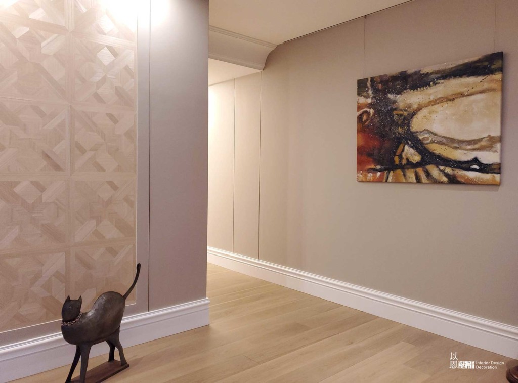 設計原則為簡單明亮、有氣質、有溫度。不過度設計、適度留白、不做過多無謂的裝修和櫃體、不跟風太流行的元素,以避免往後看會有年代感而不耐看。硬體裝修色調要能搭配原有家具,且往後更換任何類型家具軟裝也都能不受限。天花盡量簡單並拉到最高,讓視線更開闊。