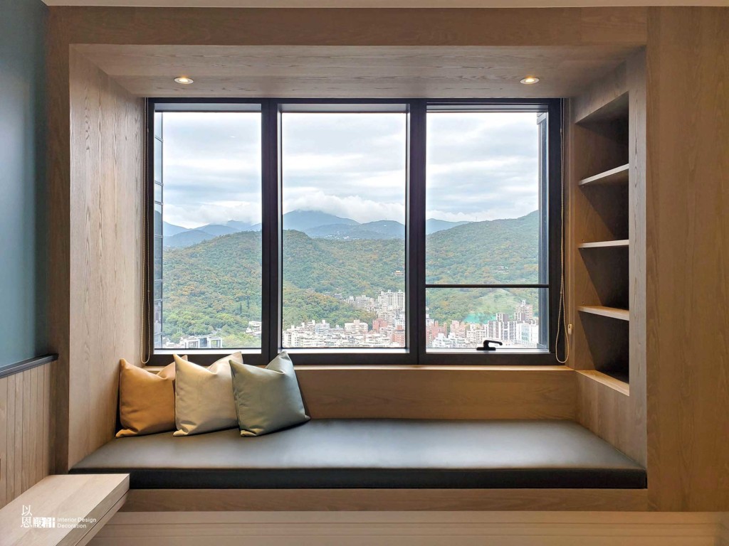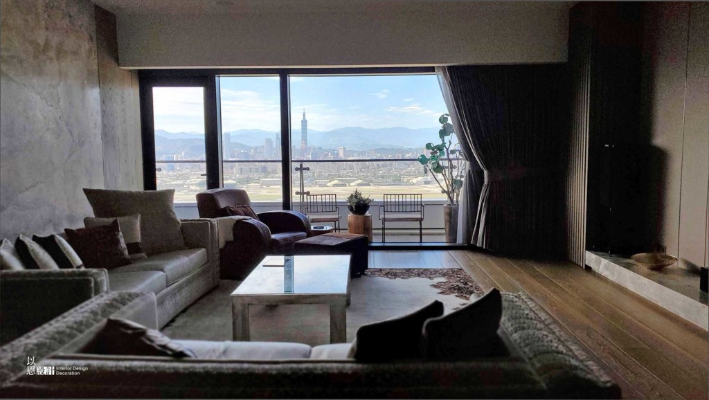 位於高樓層的景觀宅,在空間規劃上需要仔細考量各處景觀的呈現方式,避免任何形式阻擋窗景。經討論後決定將最好的面101景觀留給客廳與20坪大主臥,兩個各10坪的次臥則位於後方的面山景處。