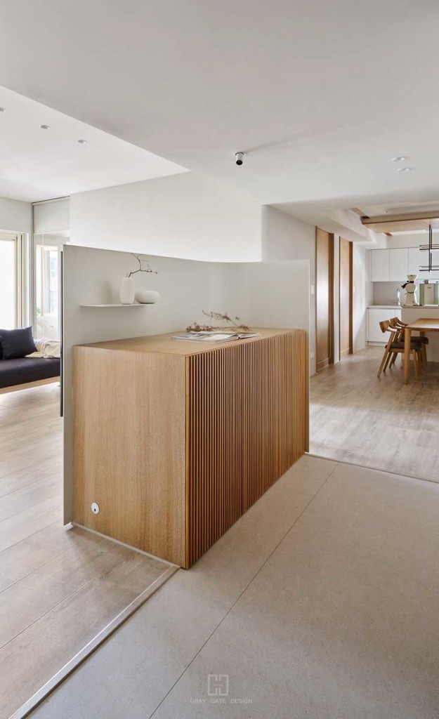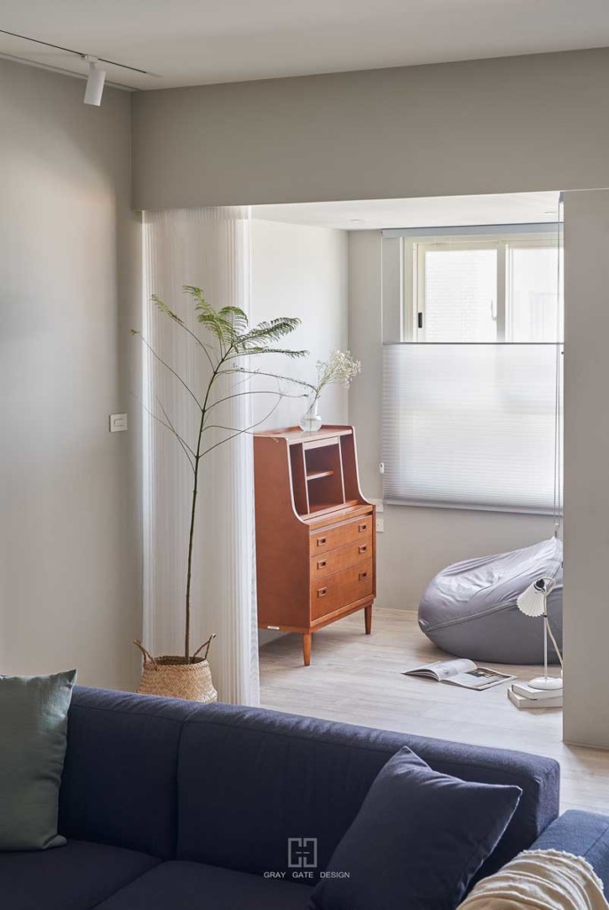 將陽光引入空間內,讓整體的亮度提升,柔化空間中的菱角,舒適的體感,在陽光處都留有空白,讓人停留。
