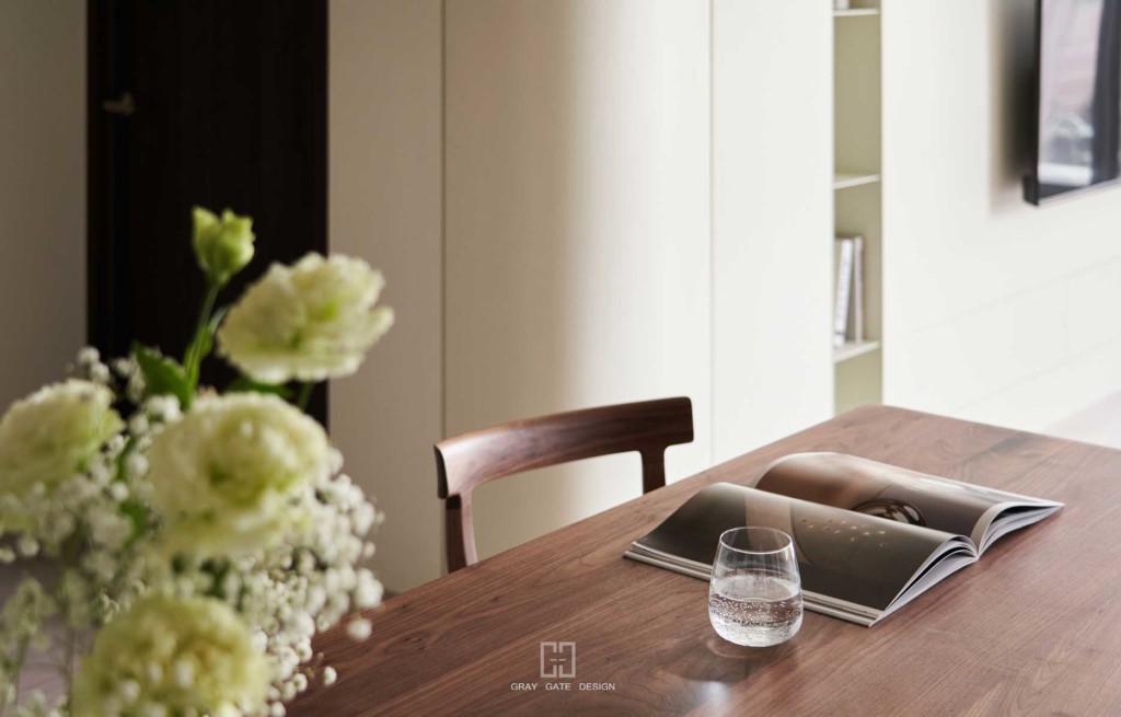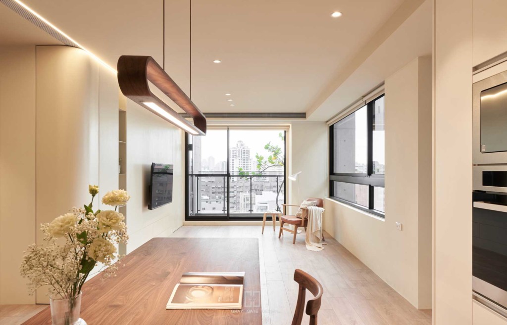 光有很多呈現的方式,影是最為美麗的對比,公區的明朗與室內溫暖的顏色,隨著光的變化,陪伴著一幕一幕溫馨的畫面。