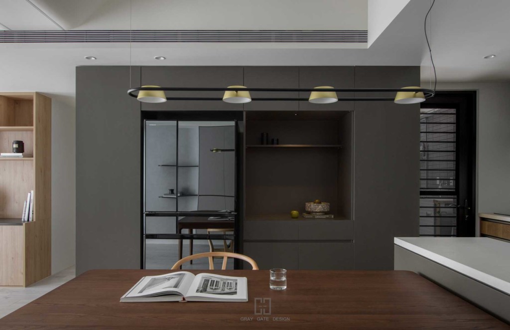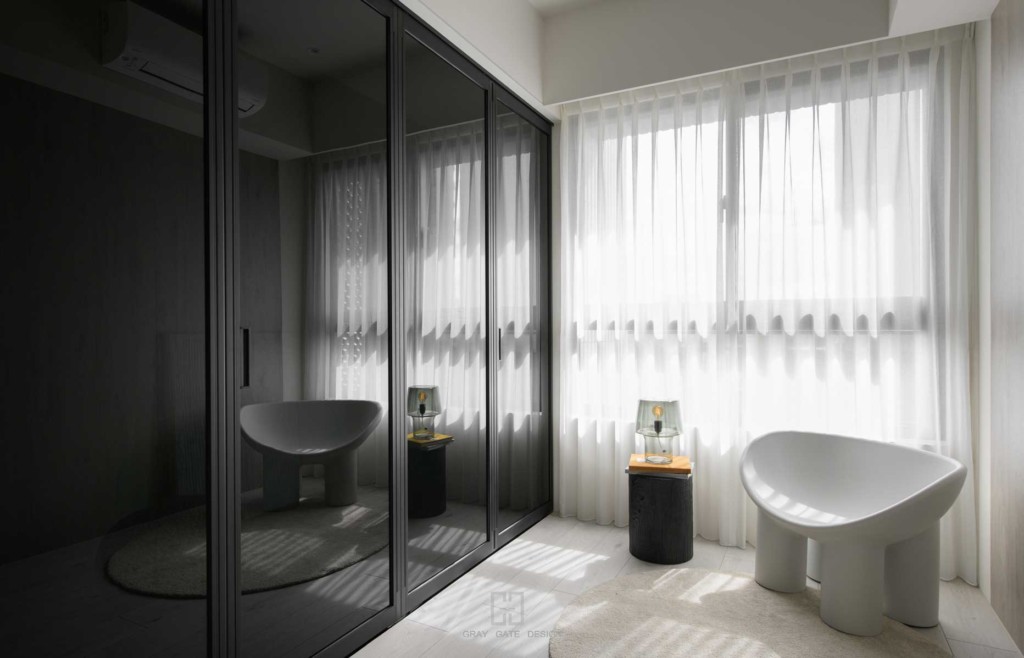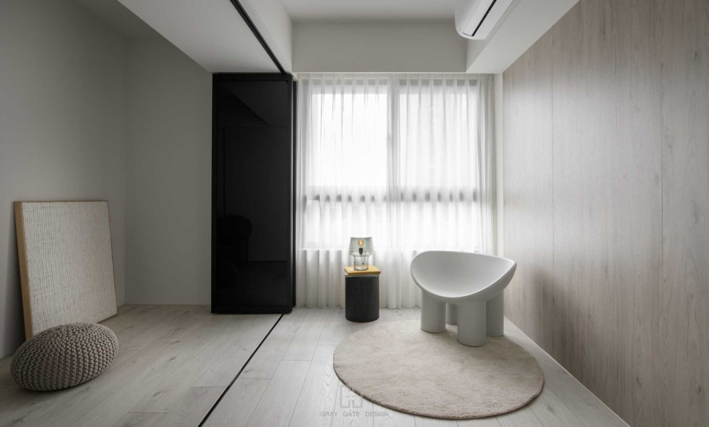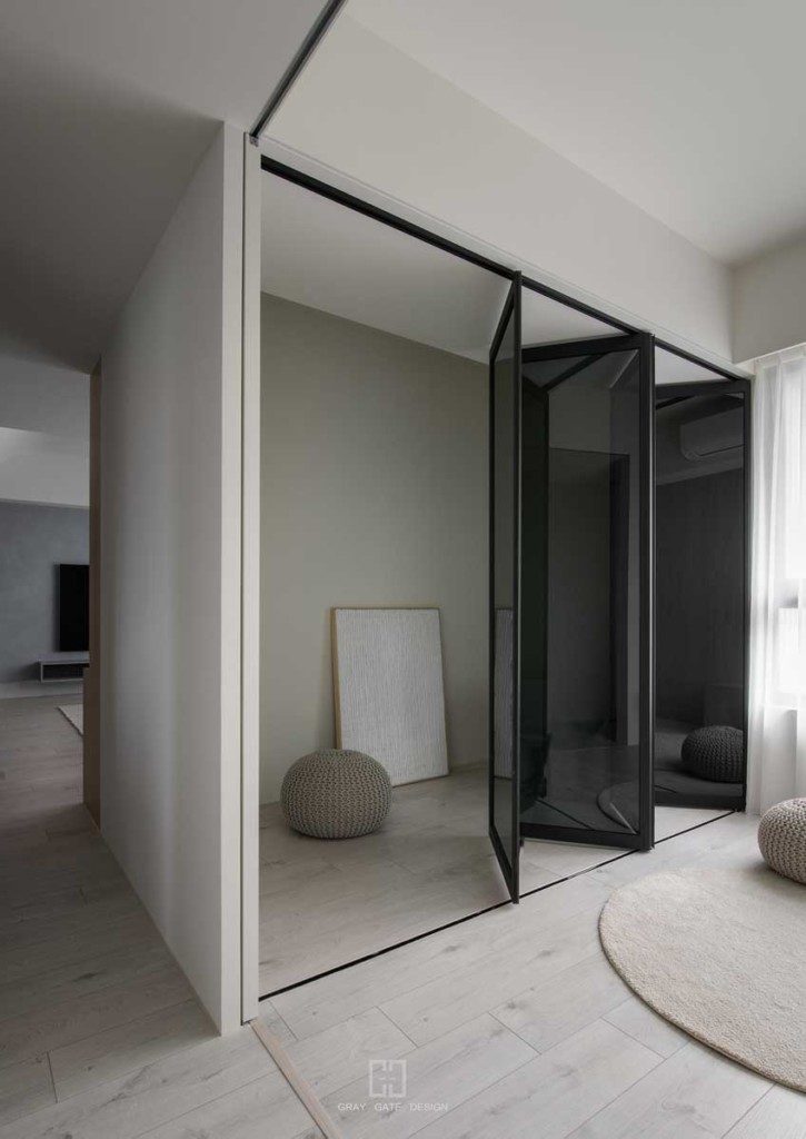 小房間為使空間整體畫面不要碎片化,配合能製作折門的廠商 ,只留鋁框深色線條最為空間的主要重點。