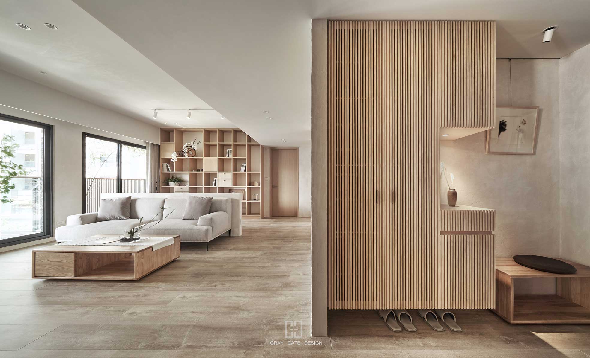 重新討論空間物與質,以簡為核心,減去多餘物體,用禪風創造留白的空間層次,光劃過建築體的線形欄杆及竹影搖曳,時間藉由影子倒印在天、壁、地三個面向。隨著時間推移,留白空間產生時間性。